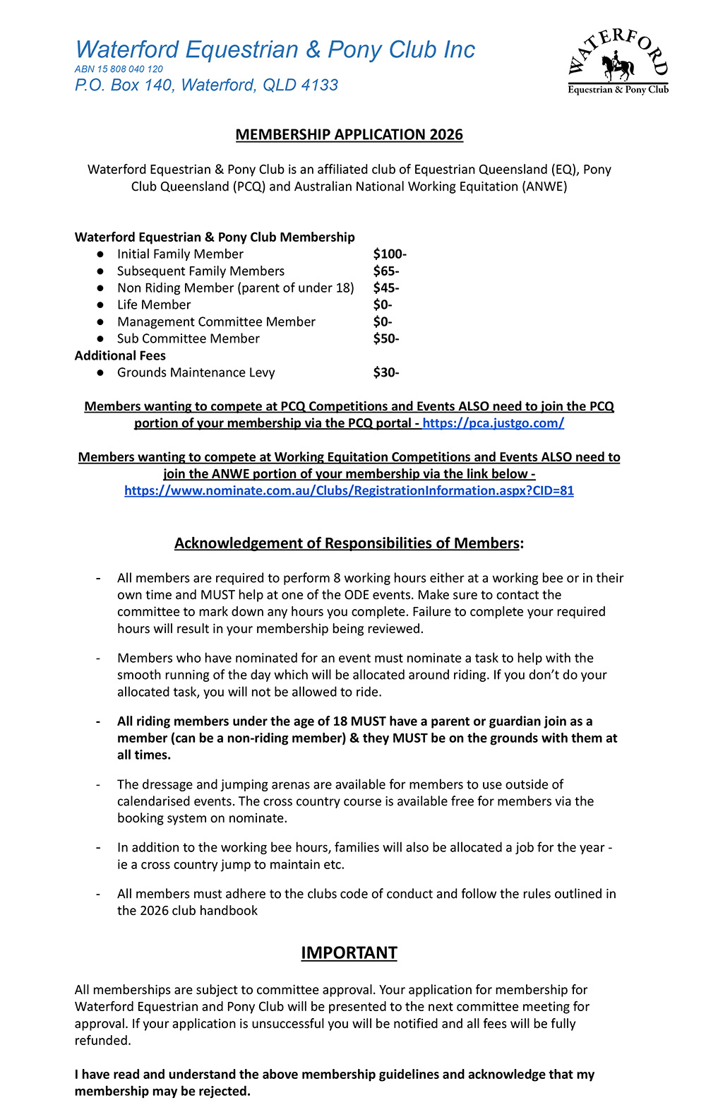 ANWE (Working Equitation) LINK - https://nominate.com.au/Clubs/RegistrationInformation.aspx?CID=81