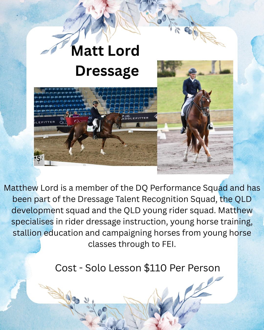 Class: expand_moreMatt Lord - 1:30pm - Private Lesson - 45 mins - Saturday 28/03/2026