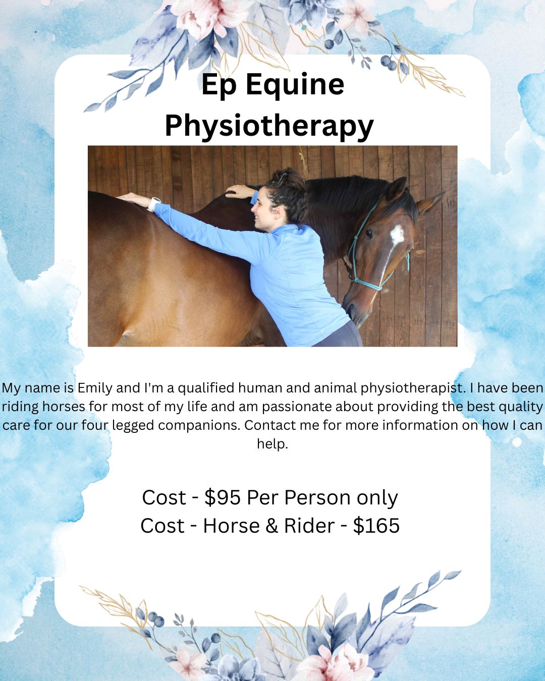 Number:e1Ep Equine Physiotherapy Horse and Rider session - 1 hour - 9am Sunday 29/02/2026 |